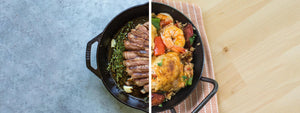 In 2013, we introduced a range of seasoned carbon steel cookware. Crafted with a sleek, modern design, these tough pans are relatives of the tried and true cast iron cookware. While both types of pans offer unparalleled flexibility and exceptional durability, there are some key differences between cast iron and carbon steel.