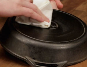 Prije kuhanja dodajte otprilike žličicu ulja u tavu i postupno zagrijavajte na ploči štednjaka ili u pećnici da se ne zalijepi. Nakon kuhanja ostavite posuđe da se ohladi, a zatim strugačem uklonite zaglavljenu hranu, oribajte četkom za čišćenje ili posebnom inox mrežastom spužvom za površine od lijevanog željeza. Osušite ručno i obilno premažite uljem. Utrljajte ulje u tavu dok se ravnomjerno ne rasporedi.
