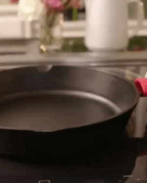 Kako biste osigurali ravnomjernu temperaturu u svom posuđu, postupno prethodno zagrijavajte posuđe od lijevanog željeza na plameniku iste veličine. Budući da lijevano željezo zadržava toplinu, nije potrebno koristiti postavku topline na tavi. Ovi koraci sprječavaju lijepljenje hrane za tavu. Ne zaboravite koristiti rukavicu za rukovanje tavom od lijevanog željeza!