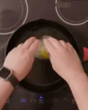 Kada je tava prethodno zagrijana, dodajte malo ulja ili masti. Zatim samo dodajte svoju hranu! (Napomena: ako želite koristiti maslac, počnite s uljem, zatim dodajte maslac neposredno prije dodavanja hrane.)